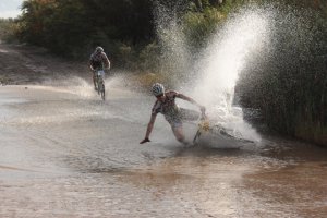 The final day was to be a race against the clock with a 40km time trial. Something which doesn’t happen very often in the mountain biking world. Compliments of Marsillo Projects a start ramp had been erected which was the biggest I had ever seen in my life. It was about 20m long and about 4m in height! Erik pretty much had the race sown up with a comfortable cushion over myself. Nonetheless with Erik starting a minute behind me i was going to push for as long as possible before he caught me. After about 25km he did. A few km later going through a water crossing that we had already passed through on the first day Erik went down just in front of me and then while trying to brake to miss him I went down! Must have been a good laugh for all those watching. Erik took the win on the day again making it 3 from 3 and winning the overall. I was second again and second overall with Pete 3rd. Thanks to the Dryland Events team for putting together a great event.