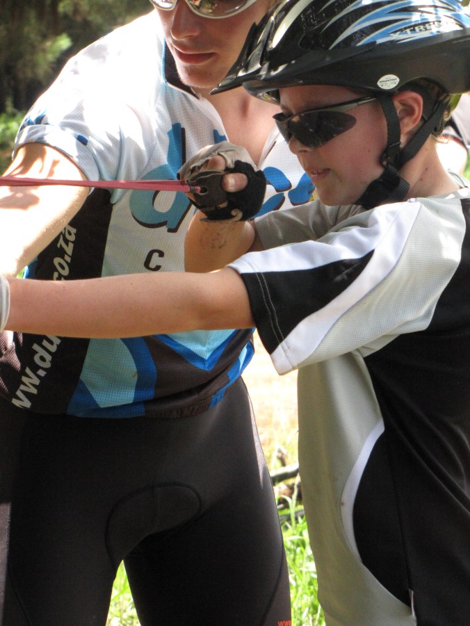 The 3rd and final day of the camp took a different feel to the other two. After arriving I took the kids for a walk on the farm pointing out a few landmarks as they would be doing an orienteering race around the farm. After the kids had lubed up their chains with Squirt, Leonard took them on a short ride while I hid the flags and clippers. The kids went off in pairs finding the flags with clippers all over the farm whilst following their clue cards. Along the way they had to answer questions about things they had learnt over the last few days and shoot katteys (a group favourite).