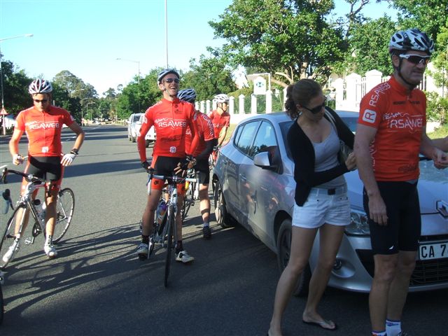 We set off all looking very pro in our matching red RSA Web kit and tackled the tough course. The 202km loop starts in Swellendam before tackling the Tradouw and Op de Tradouw passes fairly on. The Tradouw pass must be one of the most beautiful passes in South Africa! Our first feed was at 80km in and here we replenished bottles and food before heading on to Montague and then Ashton.
