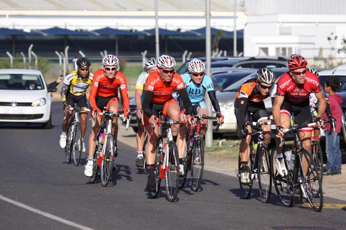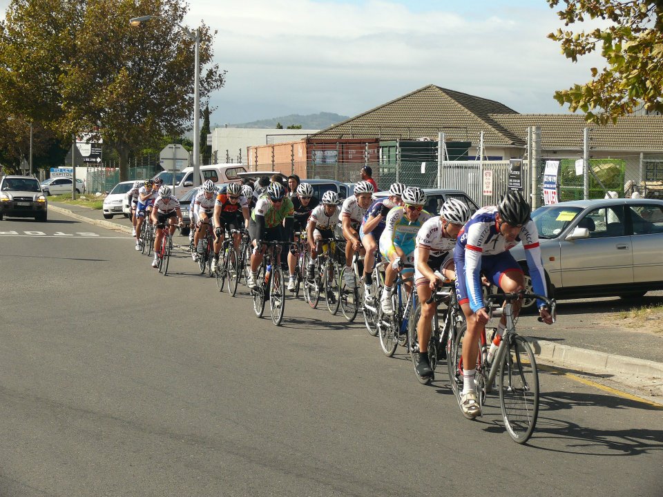 On the last lap Peter Wheeler launched a move going away with another rider, they were probably 15 seconds in front of the bunch and 25 behind Evans. With 4km to go there was no sense of any team in the peleton committing to the chase so I followed what looked to be a potentially strong move, the other rider sat up and I carried on going. I reached a bit of a cross roads here as riding 4km solo to the finish in the wind with the bunch breathing down my neck didn’t look particularly promising. Fortunately JP Jacobs (Anderson Transport) came across and I just managed to grab onto his wheel. We combined well together and started closing the gap to the two riders in front of us and held the bunch at bay. We caught them in probably the last 150meteres and as we did Jacobs attacked and I got onto his wheel but couldn’t come around him as he took 2nd and I 3rd.